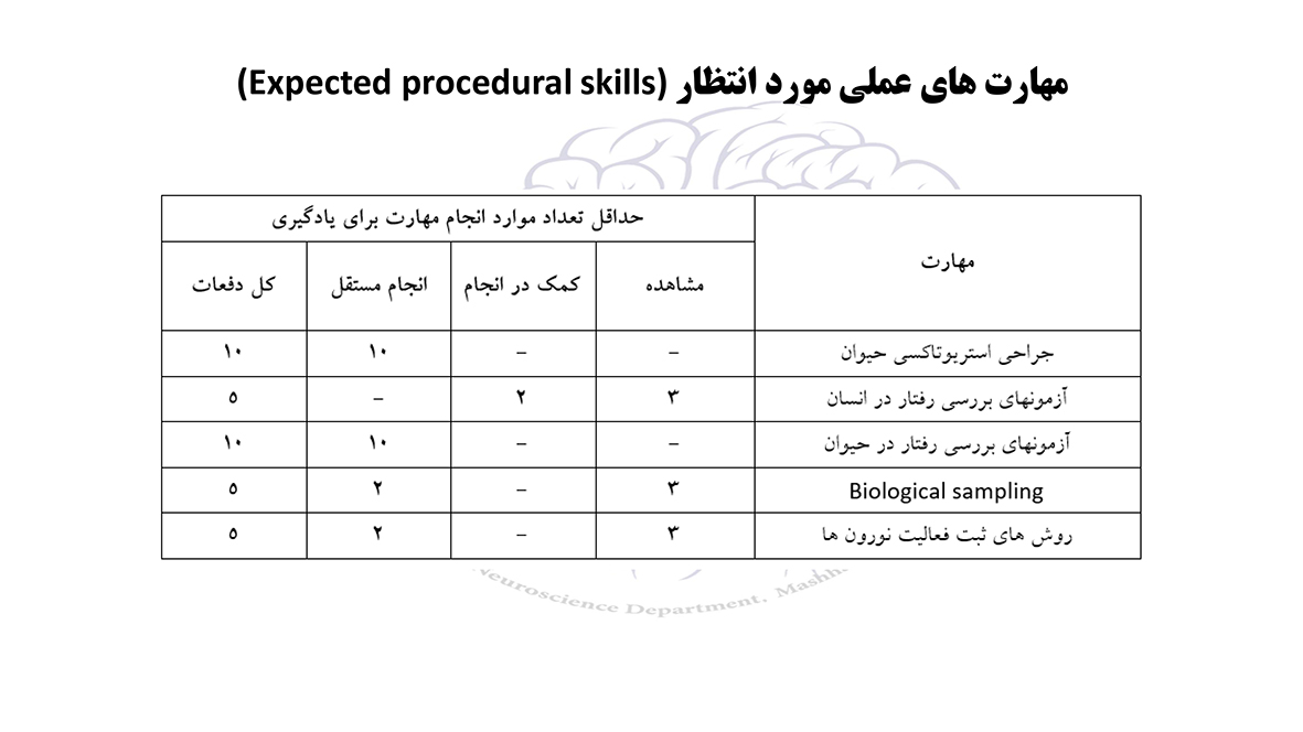 مهارت های عملی مورد انتظار 06 دی 1400 06 دی 1400 بازدید: 238 امتیاز: ( 0 Rating ) امتیاز کاربران لطفا رای دهید رای 1 رای 2 رای 3 رای 4 رای 5 مهارت های عملی مورد انتظار (Expected procedural skills) برای مشاهده متن در اندازه بزرگتر بر روی آن کلیک نمایید