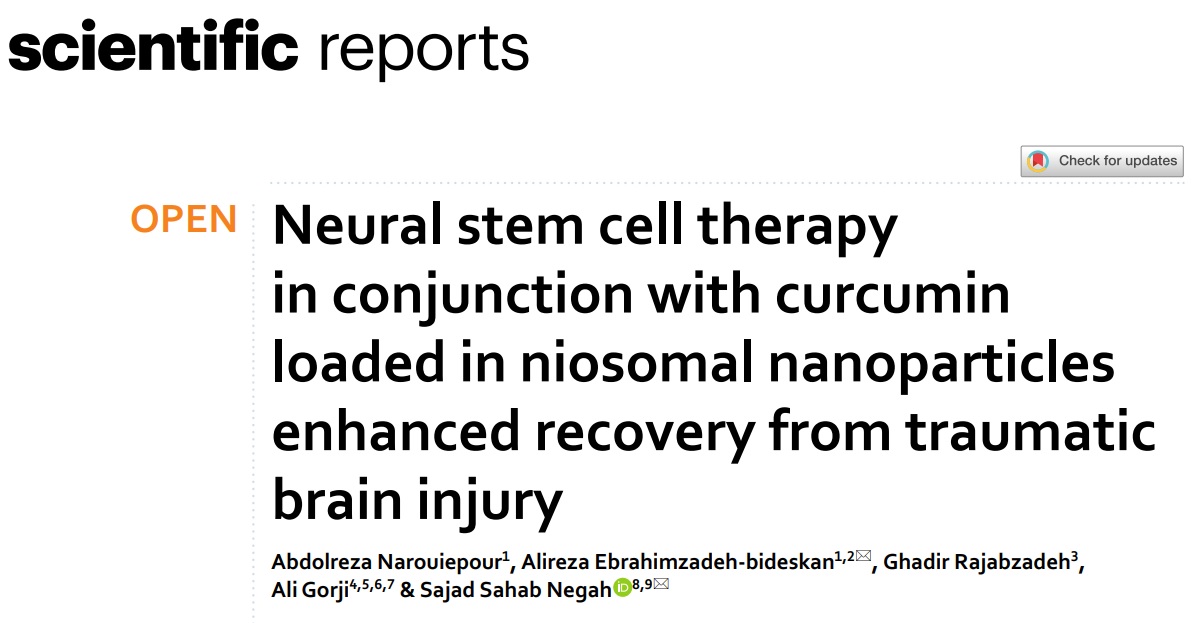 مقاله اعضای هیات علمی گروه علوم اعصاب دانشگاه علوم پزشکی مشهد با عنوان « Neural stem cell therapy in conjunction with curcumin loaded in niosomal nanoparticles enhanced recovery from traumatic brain injury » در مجله معتبر Scientific Reports به چاپ رسید.