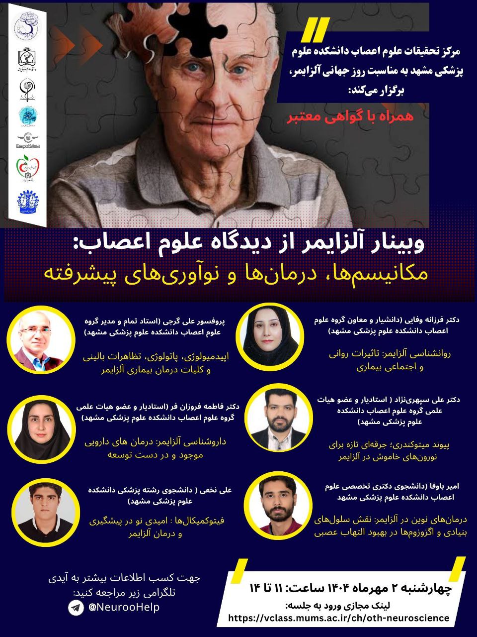 🔰 این وبینار فرصتی است برای ارتقاء دانش و دیدگاههای نوین در زمینه آلزایمر و گام برداشتن در جهت پیشرفت در درمانها و تحقیقات.